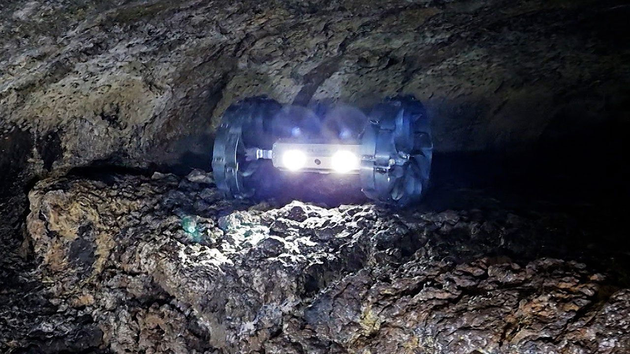 이 피트 속으로 떨어져 미지의 달 동굴을 탐사하는 게 로버의 임무입니다.