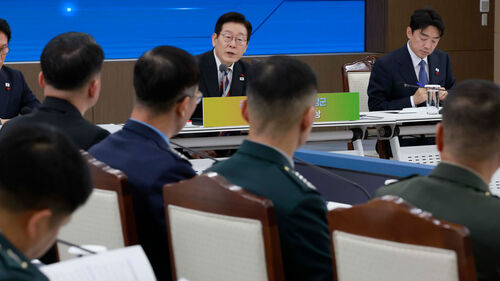 ▲ 이재명 대통령이 18일 서울 용산구 국방부에서 열린 국방부·국가보훈부 업무보고에서 발언하고 있다.