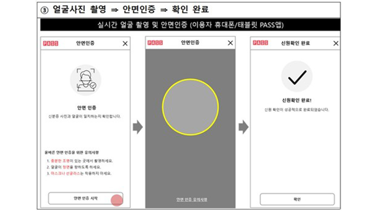 안면 인증 절차는 통신 3사가 운영하는 패스(PASS) 앱을 활용해 제공됩니다.