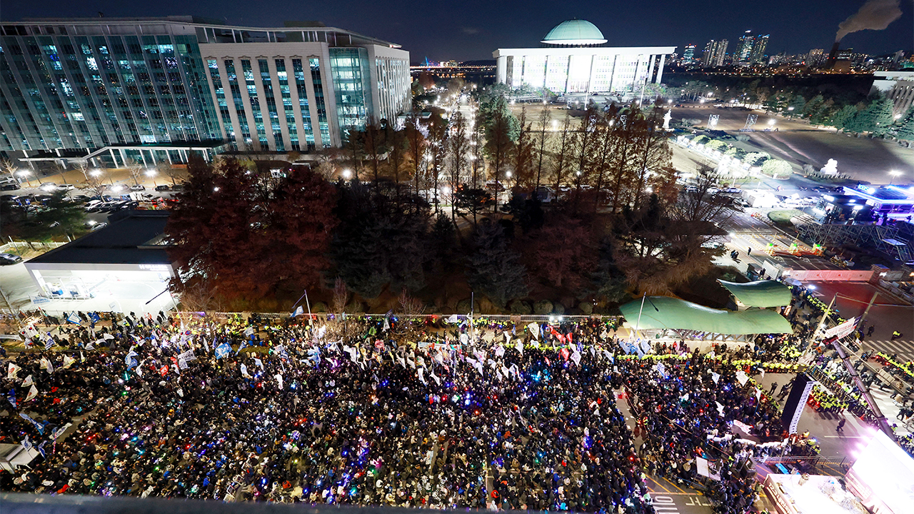 ▲ 지난 3일 서울 여의도 국회의사당 정문 앞에서 열린 '12·3 내란·외환 청산과 종식, 사회 대개혁 시민 대행진' 집회에서 참가자들이 응원봉을 들고 있다.