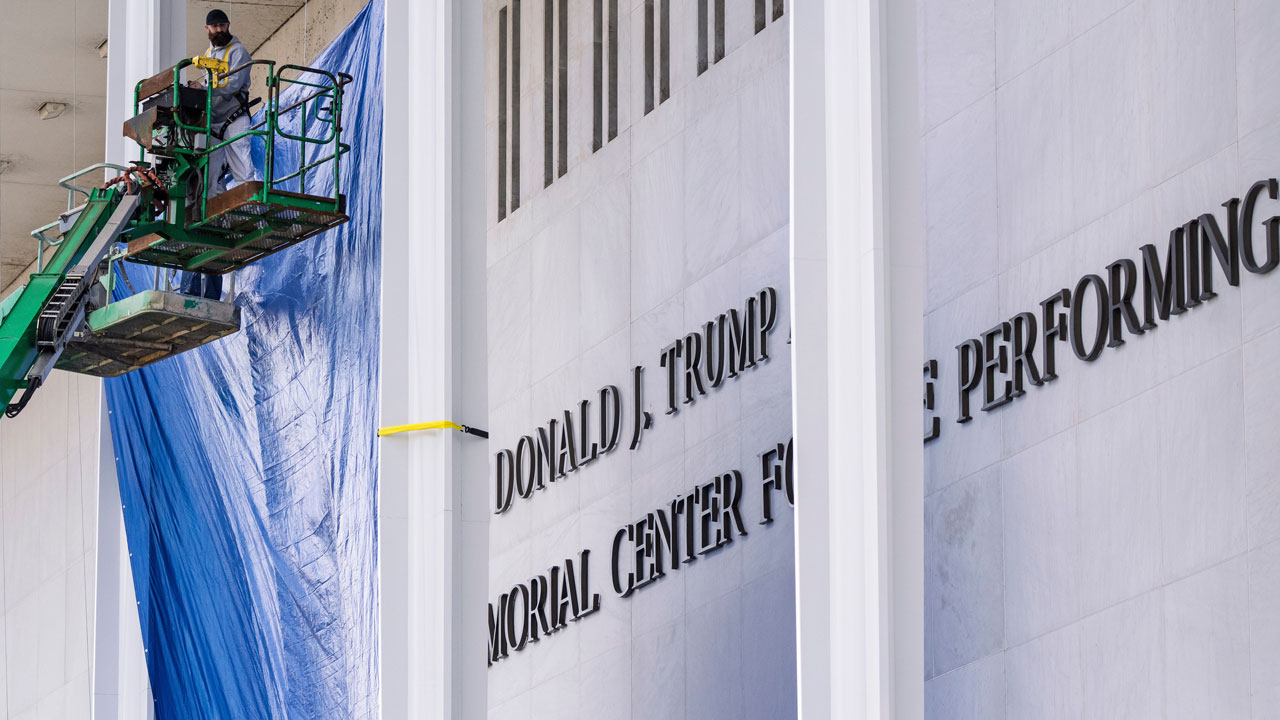 ▲ '트럼프-케네디센터' 새 간판 설치 작업