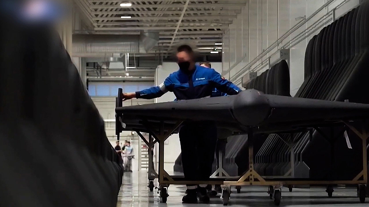 러시아 국방 당국이 공개한 영상으로, 공장 내부에는 검게 도색된 드론 수십 대가 줄지어 있습니다.