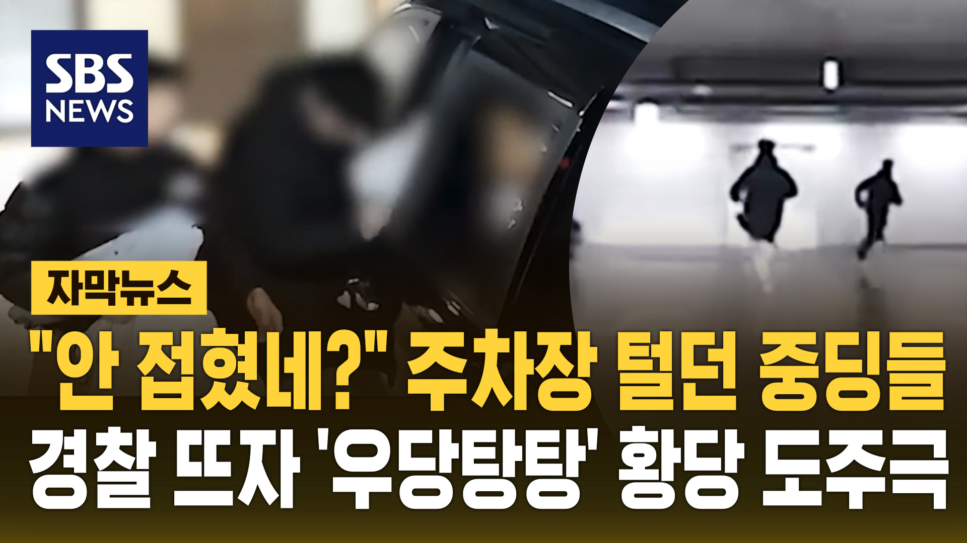 경찰이 출동하자 주차장 안을 요리조리 뛰어다니며 달아나지만, 퇴로가 막힌 채 빠져나가지 못하고 붙잡힙니다.