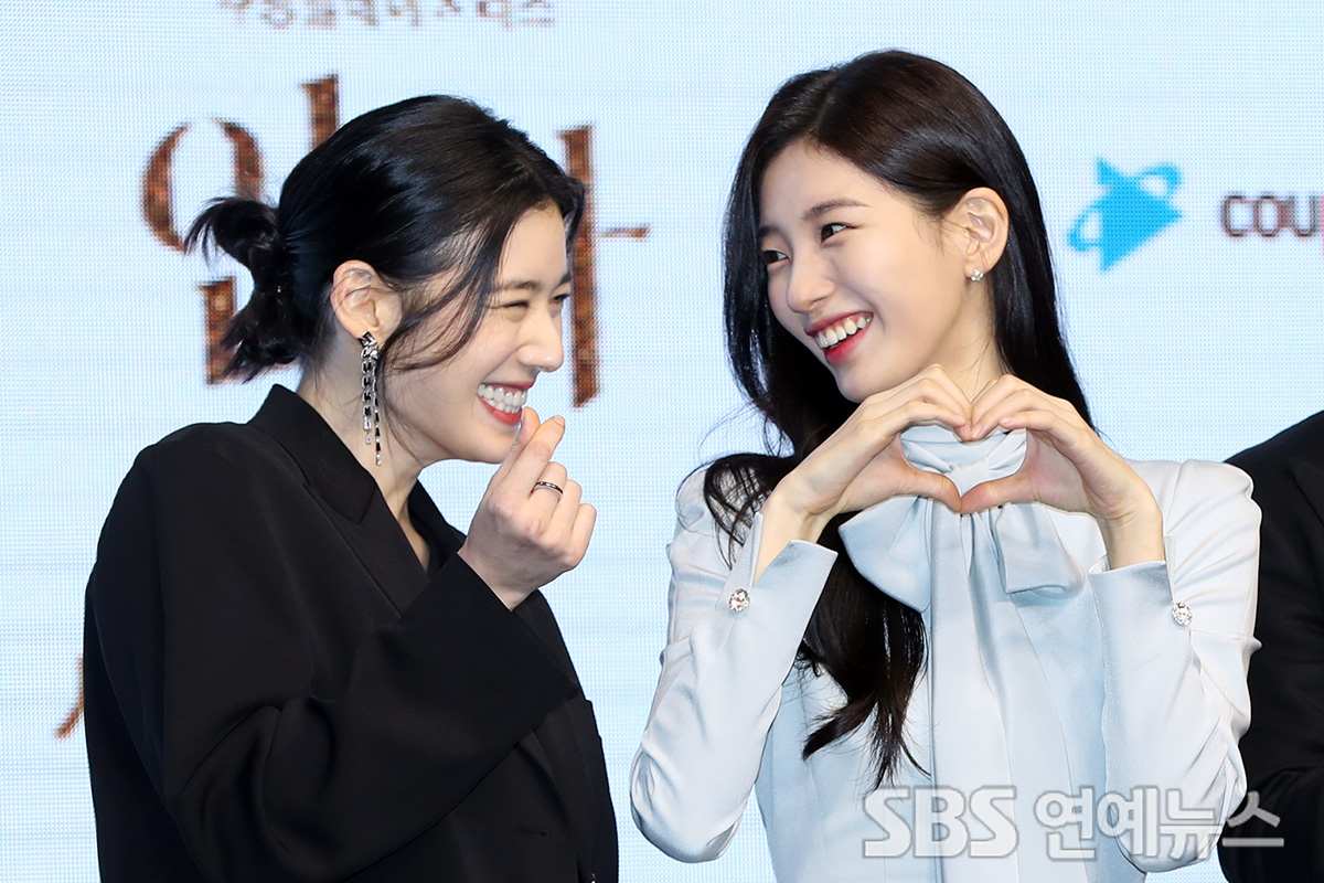 Jung Eun-Chae (left) and Suzy stepped out for the press conference for Coupang Play’s original series “ANNA,” held at the Conrad Seoul hotel on the morning of June 21, 2022, striking a sweet heart pose during the photo call.Copyright Ⓒ SBS. All rights reserved. 무단 전재, 재배포 및 AI학습 이용 금지