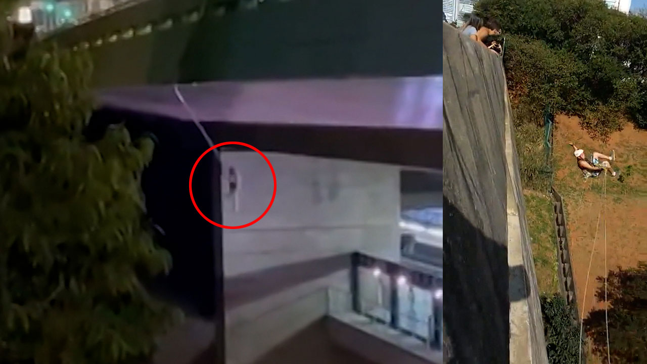 한 20대 여성이 브라질 상파울루의 수마레 고가교에서 번지점프를 시도합니다.