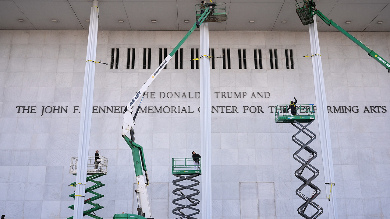 ▲ '트럼프-케네디 센터' 새 간판 설치 작업