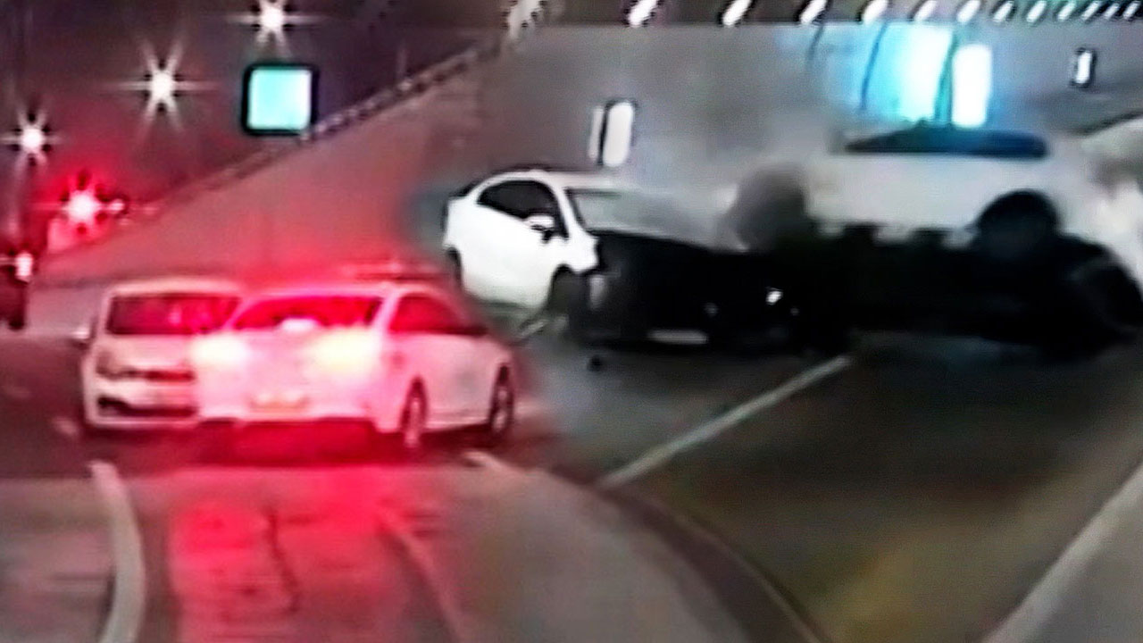 터널 안에서도 또 다른 검은색 차량이 급히 차로를 바꾸는 등 아찔한 상황이 이어졌는데, 결국, 정상 주행 중이던 다른 흰색 차량과 크게 충돌한 뒤 멈춰 섭니다.