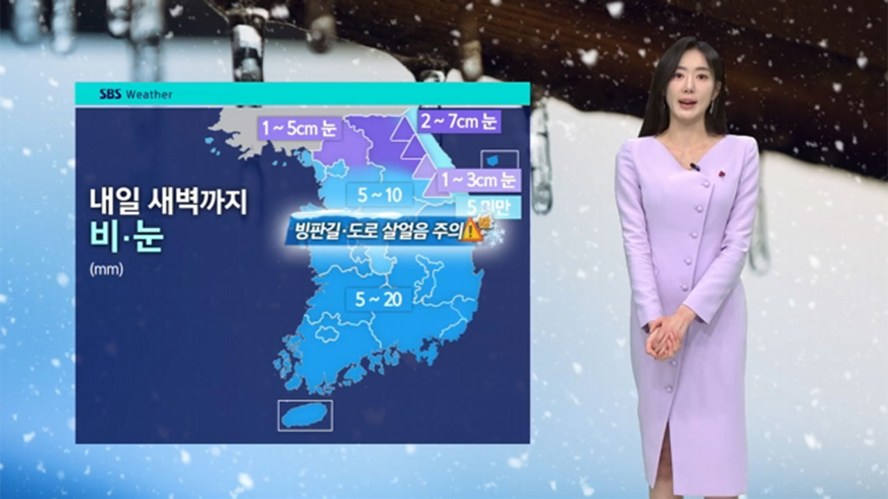눈과 비는 내일(24일) 새벽에는 대부분 그치겠지만, 도로 위 빙판길과 살얼음이 많이 끼겠습니다.