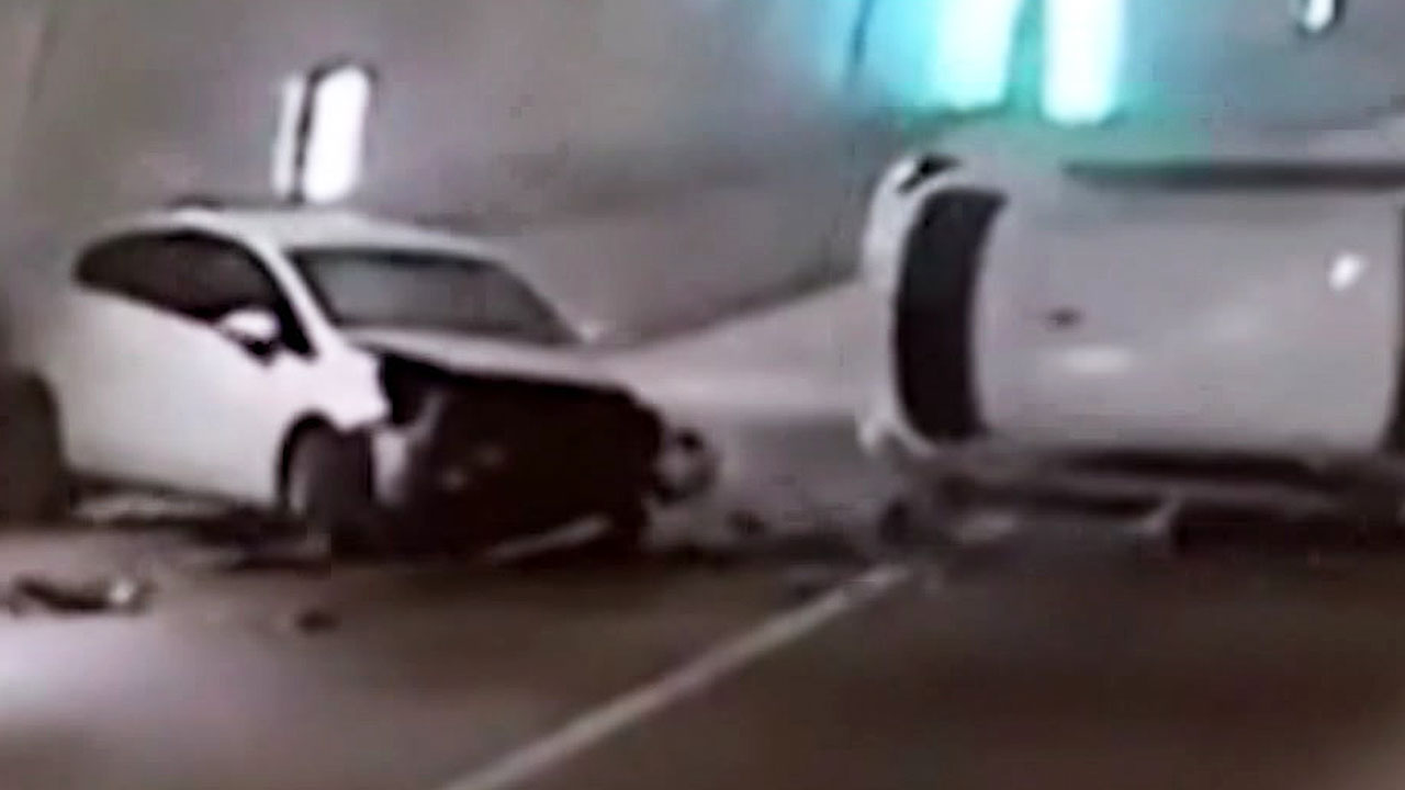 터널 안에서도 또 다른 검은색 차량이 급히 차로를 바꾸는 등 아찔한 상황이 이어졌는데, 결국 정상 주행 중이던 다른 흰색 차량과 크게 충돌한 뒤 멈춰 섭니다.