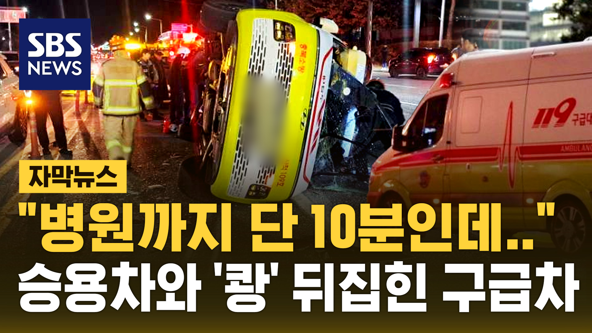 직진 신호로 바뀌었지만, 사이렌 소리가 들리자 대부분의 차량이 멈춰 섰는데, 그 순간 4차로에서 승용차 한 대가 달려와 교차로를 빠져나가던 구급차의 후미를 쳤고, 충격을 이기지 못한 구급차는 옆으로 기울며 전도됐습니다.