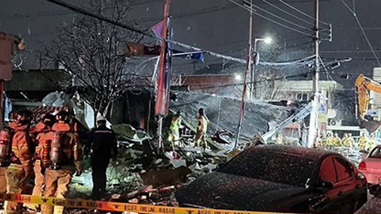 ▲ 2023년 12월 24일 대전 대덕구 식당 건물에서 발생한 폭발 사고로 건물과 차량이 파손돼 있다