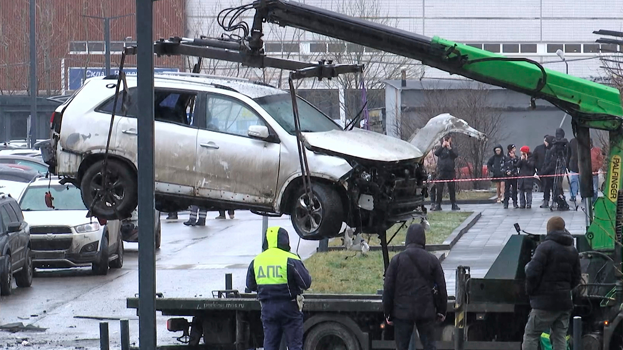 ▲ 지난 22일 러시아군 총참모부 작전훈련국장인 파닐 사르바로프 중장이 차량 폭탄 공격으로 숨진 가운데 현장에서 폭파된 차량에 대해 조사를 진행하고 있다.