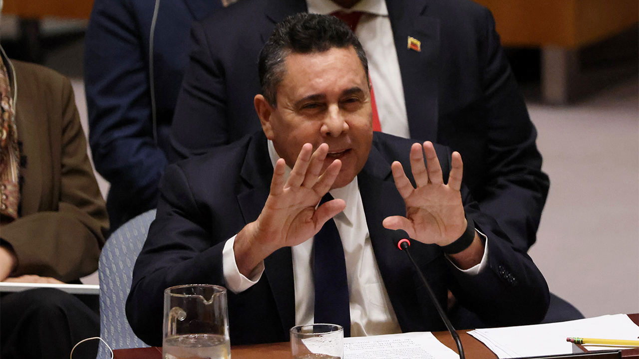 ▲ 23일(현지시간) 미국 뉴욕에서 열린 유엔 안전보장이사회 회의에서 발언 중인 사무엘 몬카다 주유엔 베네수엘라 대사