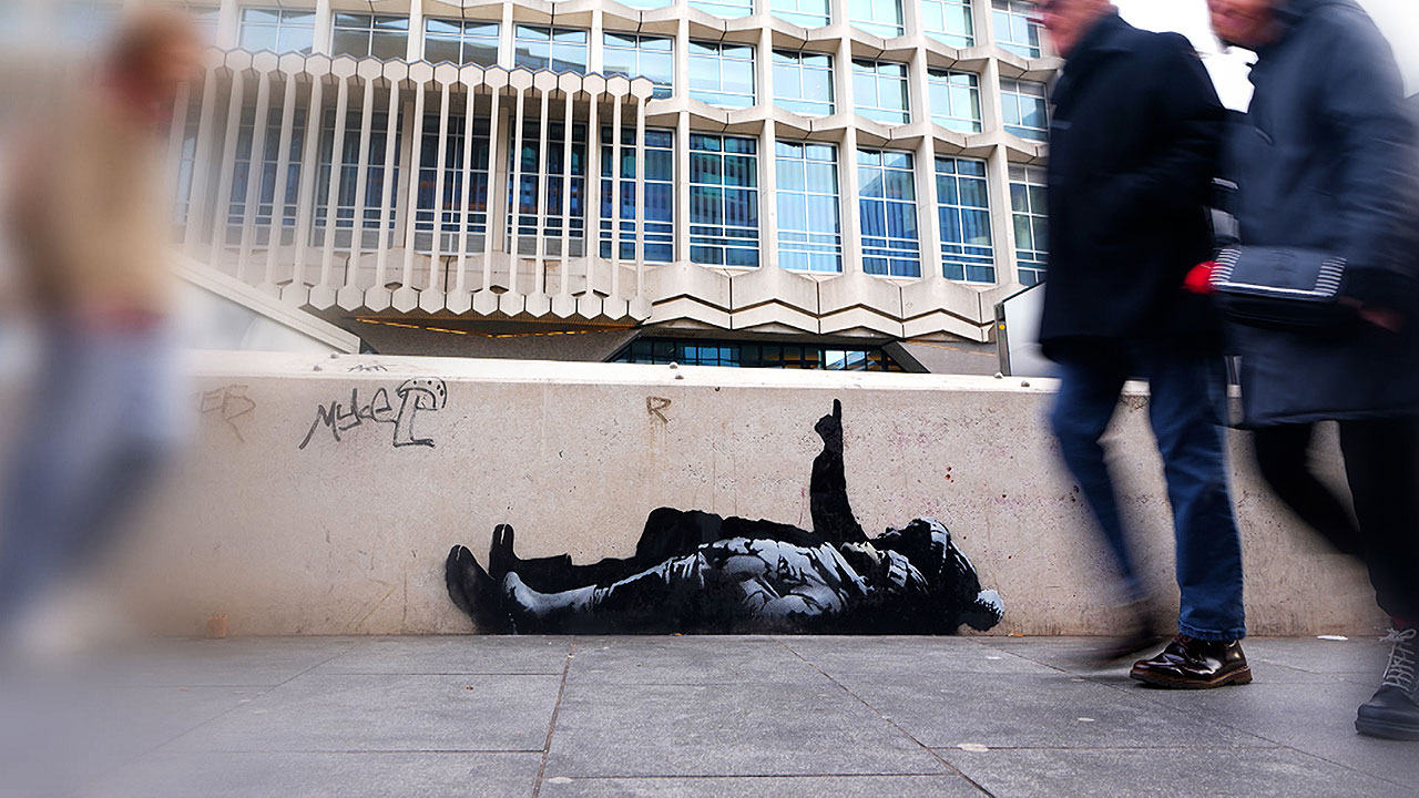 지금 보시는 이 벽화는 크리스마스를 앞둔 영국 런던 주택가에 새로 등장한 '얼굴 없는 거리의 철학자' 뱅크시의 작품입니다.
