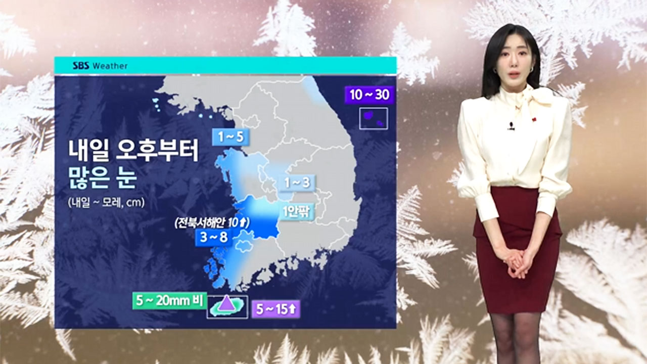 호남, 서해안에 최대 10cm 이상, 제주 산지에 최고 15cm 이상, 울릉도와 독도에 최고 30cm의 폭설이 예상됩니다.