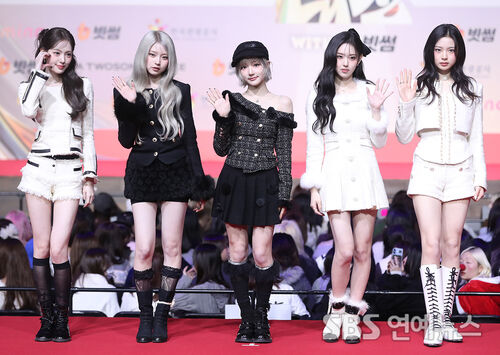 K-pop group KiiiKiii hits the red carpet at the 2025 SBS Gayo Daejeon at Inspire Arena in Jung-gu, Incheon, on Dec. 25, posing for photographers.