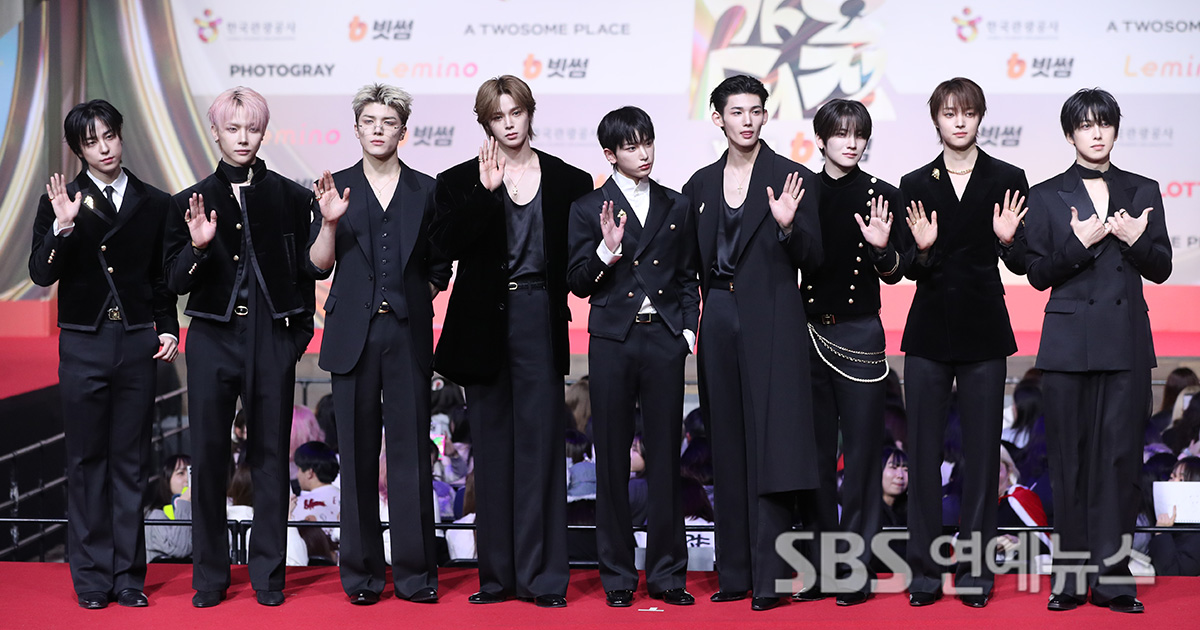 K-pop group &TEAM hit the red carpet at the 2025 SBS Gayo Daejeon at Inspire Arena in Jung-gu, Incheon, on December 25, striking confident poses in head-to-toe black.