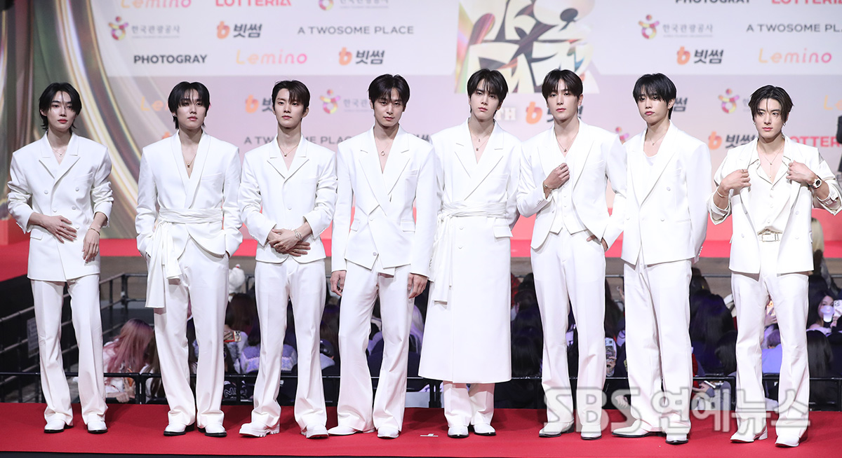 THE BOYZ hit the red carpet in winter-white looks at the 2025 SBS Gayo Daejeon, held at Inspire Arena in Incheon on Dec. 25.