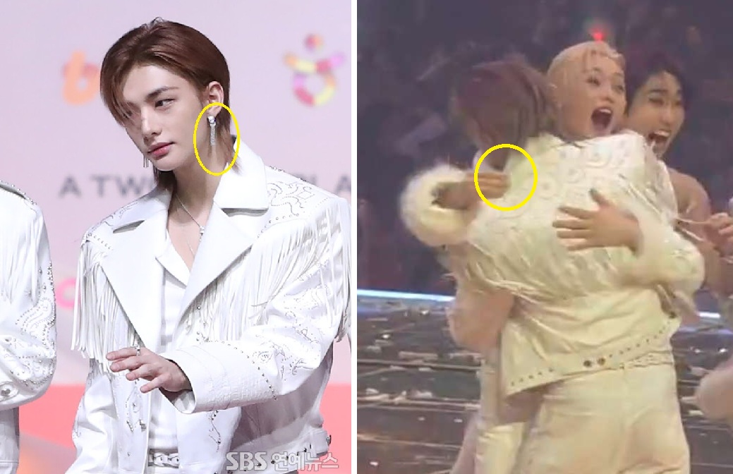 그룹 스트레이 키즈 현진이 무대 위에서 잃어버린 초고가 귀걸이를 멤버 필릭스가 찾아주며 크리스마스 같은 해프닝을 만들었다.