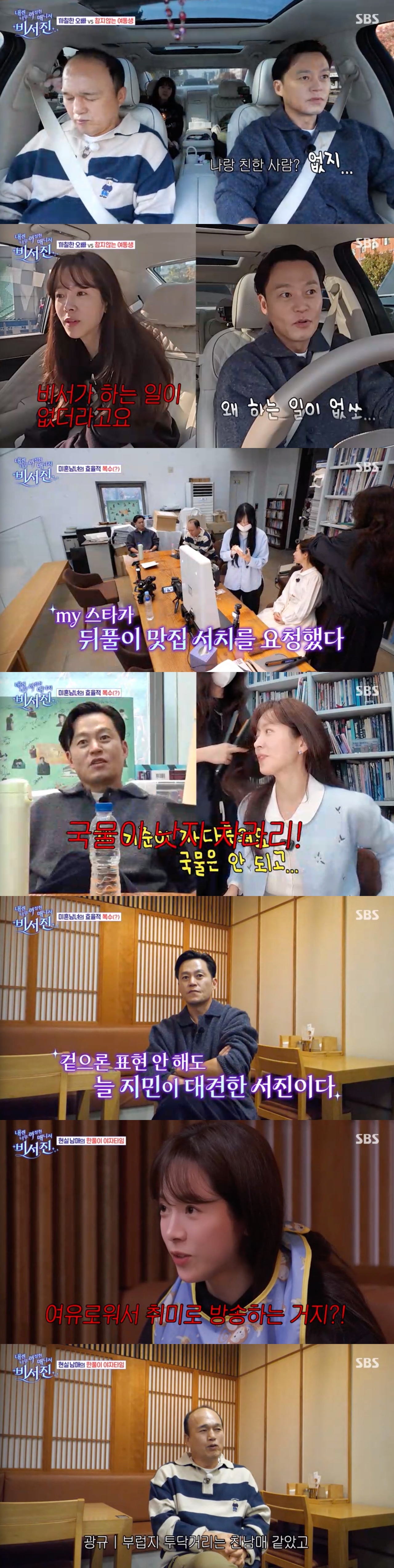 이어 한지민은 이서진에게 "비서진 하면서 선배님이랑 친한 사람 나온 적 있냐?"라고 물었다. 없었다는 이서진의 대답에 한지민은 "그러니까 사람들이 어려워하면서 못 시키고 그러는구나"라며 비서가 하는 일이 없더라고 했다.