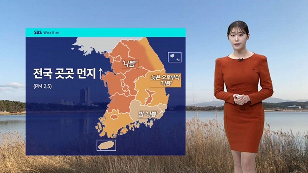 서쪽 지역을 중심으로 일평균 먼지 농도 나쁨 수준이 예상되고요, 오후가 되면서 그 밖의 전국 대부분 지역에서 공기 질 탁해지겠습니다.
