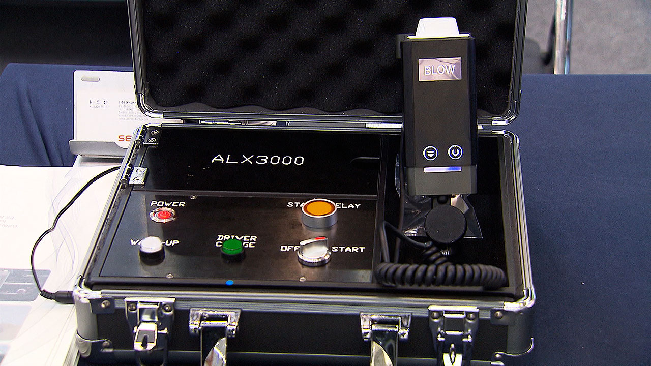 해당 장치는 기기에 숨을 불어넣었을 때 알코올 농도가 일정 수준 이상이면 시동이 걸리지 않게 하는 방식입니다.