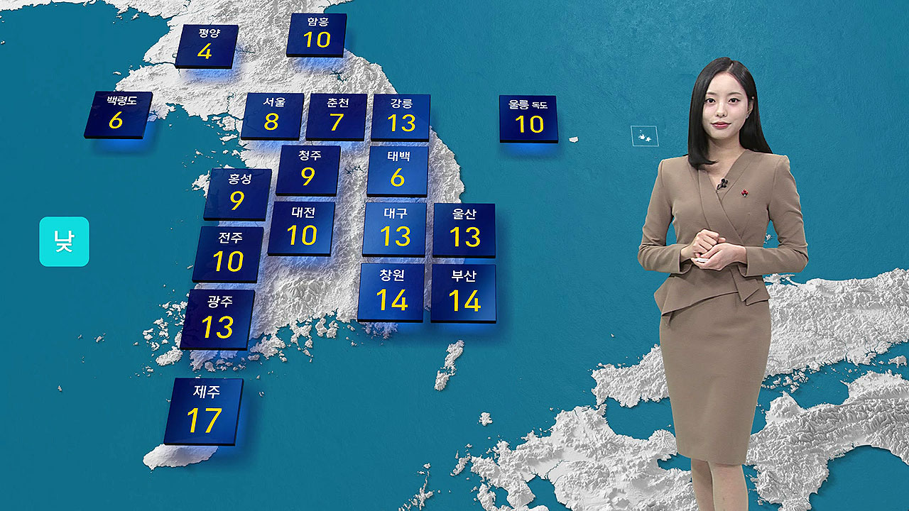 낮 기온 서울 8도, 대구 13도까지 오르며 겨울치고 온화하겠습니다.