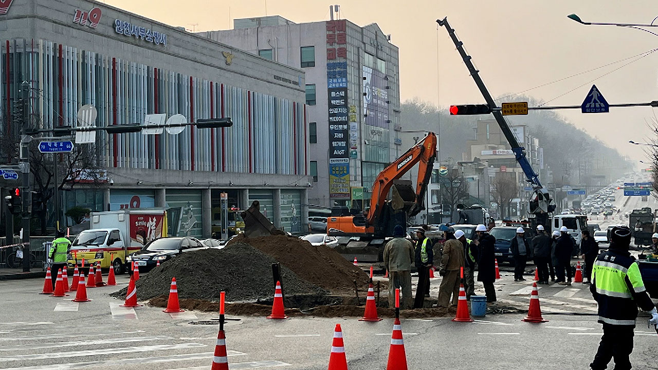 인천 서구에서 땅 꺼짐(싱크홀)이 발생해 관계 당국이 복구 작업에 나서면서 주변 도로 통행이 부분 통제됐습니다.