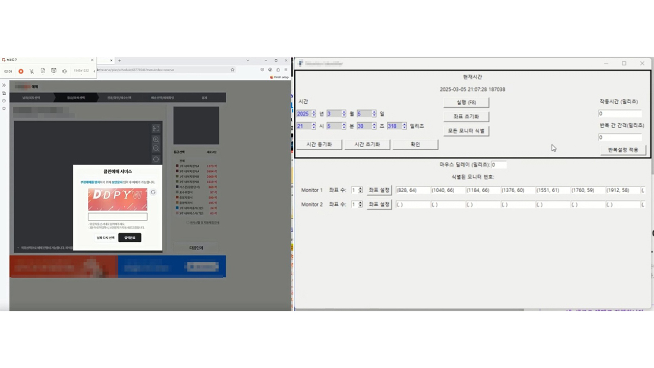▲ 직접 예약 링크 프로그램(왼쪽)과 매크로 프로그램(오른쪽) 화면