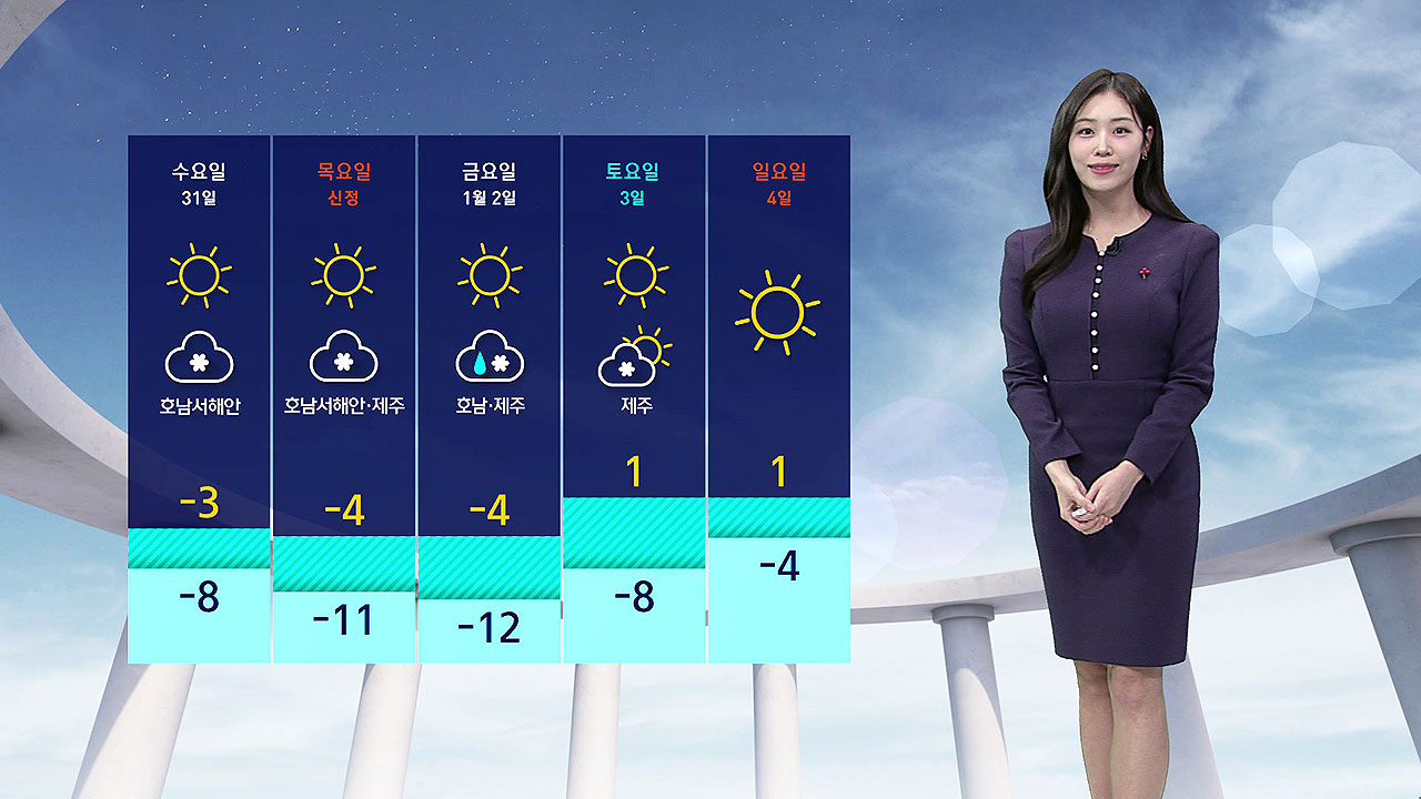 올해의 마지막 날인 내일은 종일 영하권의 추위가 나타나겠습니다.
