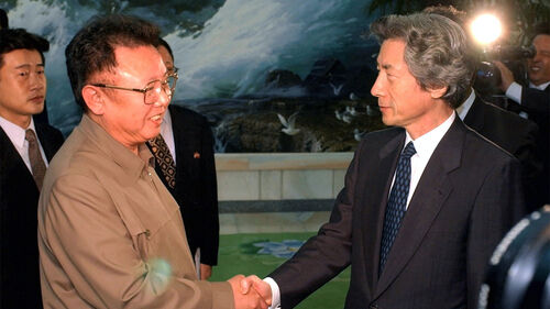 ▲ 2002년 9월 북한 평양에서 열렸던 북일 정상회담에서 고이즈미 준이치로 일본 총리와 김정일 북한 국방위원장(왼쪽)이 악수하고 있다