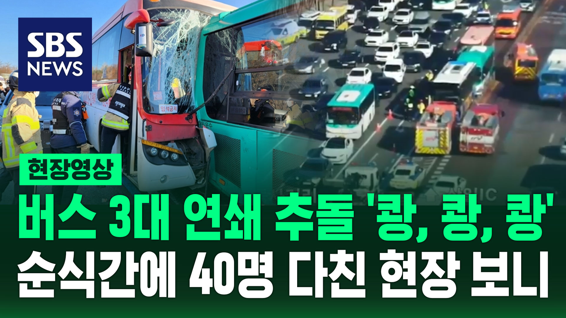 오늘(30일) 낮 1시쯤 서울 강동구 길동생태공원 앞 사거리에서 광역버스 1대와 시내버스 2대, SUV 1대 등 차 4대가 잇따라 부딪히는 4중 추돌사고가 났습니다. 소방 당국은 인력 67명과 차량 18대를 투입해 버스 기사와 승객 등 49명을 구조했지만, 이 가운데 40명이 다쳐 병원 치료를 받고 있습니다. 현장 영상으로 전하겠습니다.