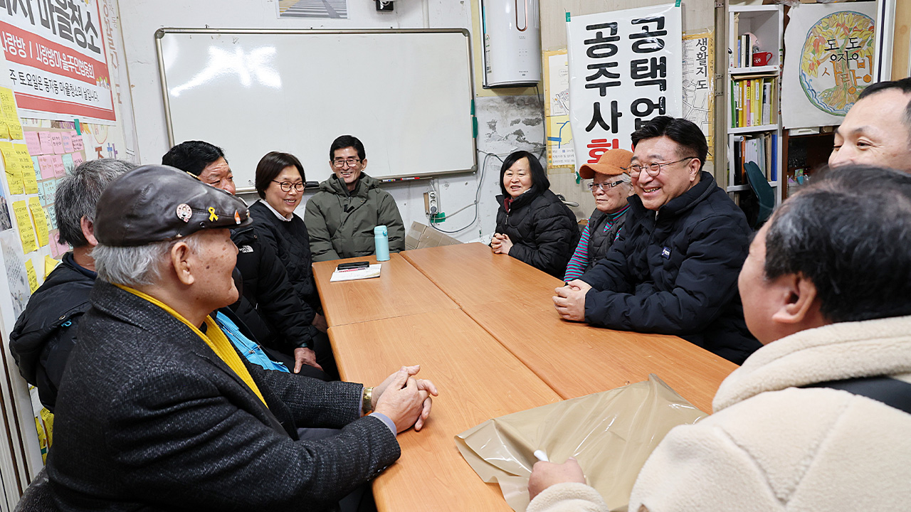 ▲ 윤호중 행정안전부 장관은 30일 오후 서울시 용산구 후암로 소재 동자동사랑방에서 사회연대경제 현장 간담회를 열고 주민 의견을 청취하고 있다.