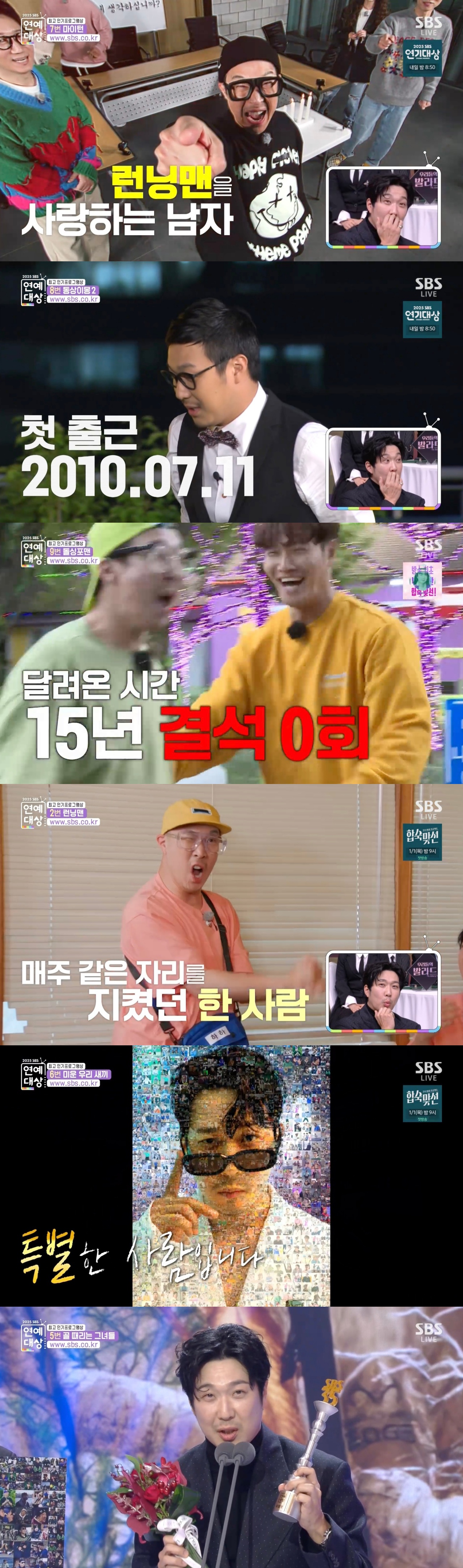 '런닝맨'의 하하가 특별상의 주인공이 됐다. 2010년 7월 11일 '런닝맨' 1회를 시작으로 15년 동안 단 한 번도 결석한 적이 없는 하하.