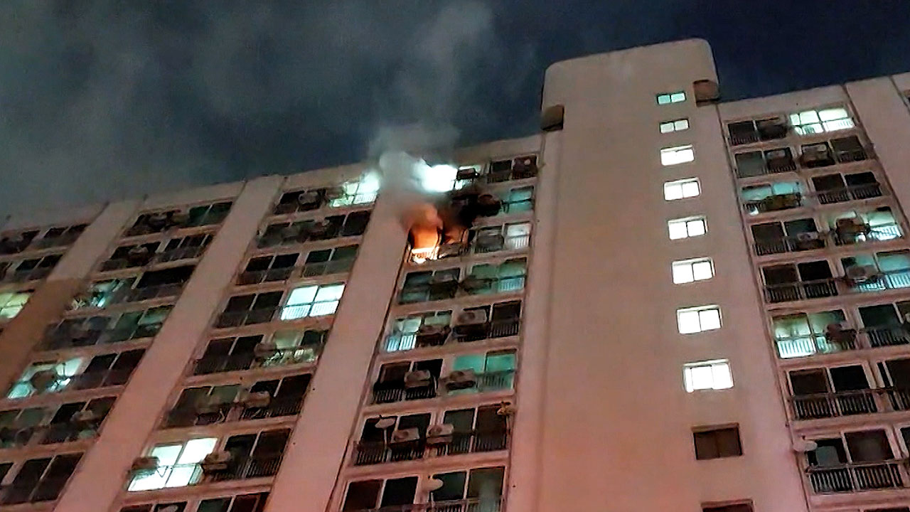 아파트 창문 밖으로 연기가 끊임없이 뿜어져 나오고, 집 안은 새까맣게 불에 그을렸습니다.