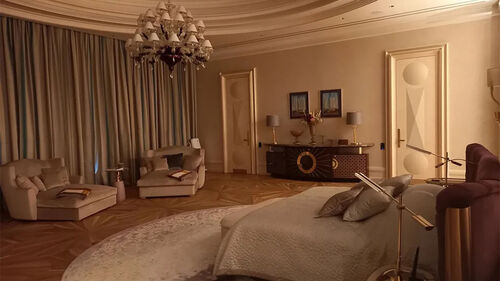 푸틴의 침실로 추정되는 공간의 면적은 241제곱미터에 달하고 욕실에는 도금된 자쿠지와 난간이 있습니다.