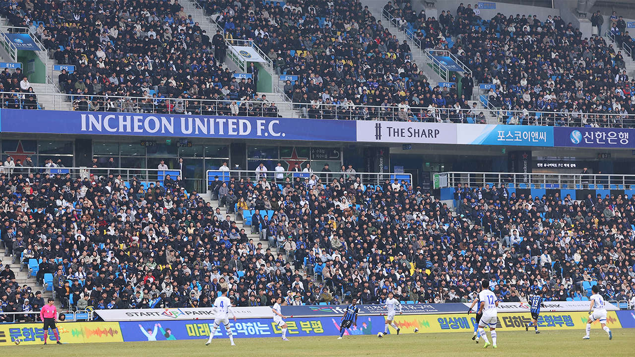 ▲ 지난 3월 1일 인천축구전용경기장에서 열린 프로축구 K리그2 인천 유나이티드와 수원 삼성의 경기에서 축구 팬들이 관중석을 가득 메우고 있다.