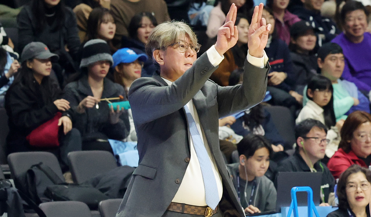 ▲ 29일 고양 소노아레나에서 열린 2025-2026 프로농구 고양 소노와 서울 SK 경기에서 소노 손창환 감독이 작전 지시하고 있다.