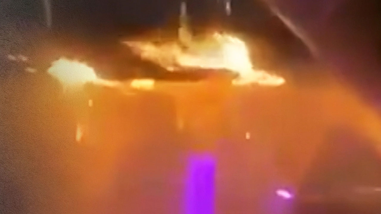 샴페인 여러 병에 폭죽을 꽂아 터트리고 있는데, 그 위 천장 흡음재에 불이 붙었습니다.
