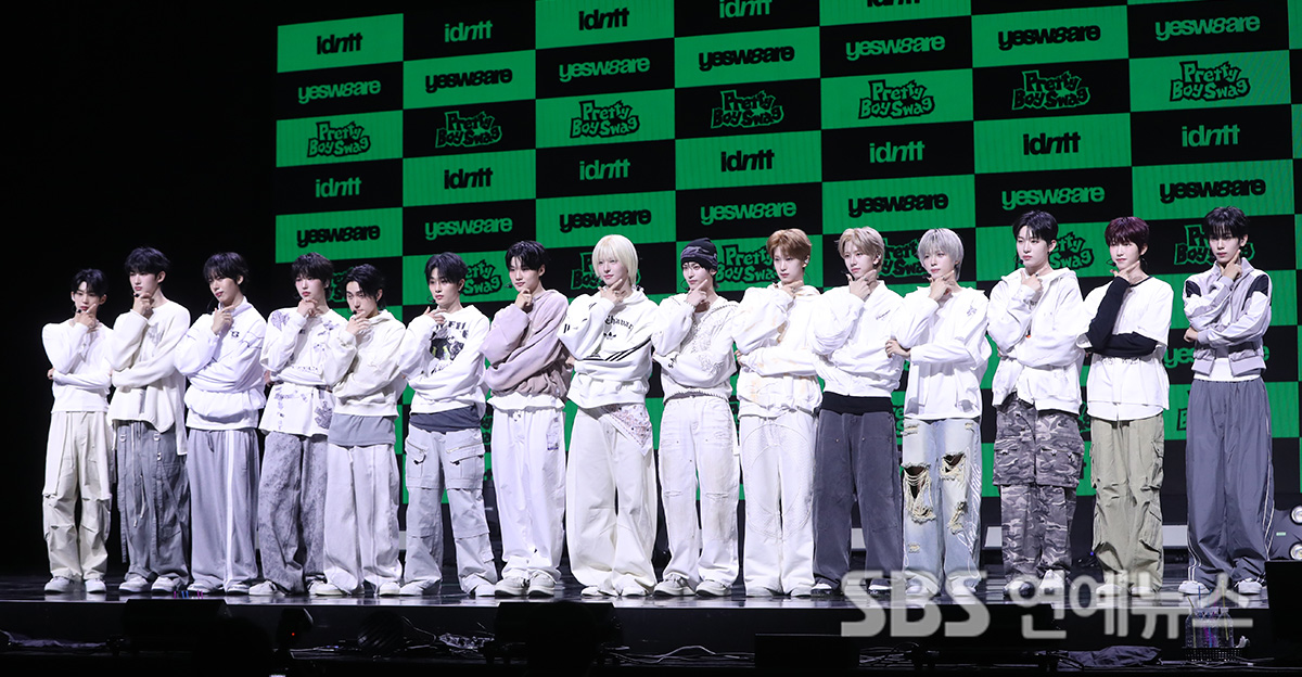 K-pop group idntt hit the photo wall at Blue Square in Seoul’s Yongsan district on Jan. 5, stepping out for the showcase of their new album as both sub-units appeared together.