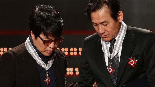 ▲ 지난 2013년 11월 18일 '2013 대한민국 대중문화예술상' 시상식에서 은관 문화훈장을 수상한 배우 안성기(오른쪽)와 가수 조용필