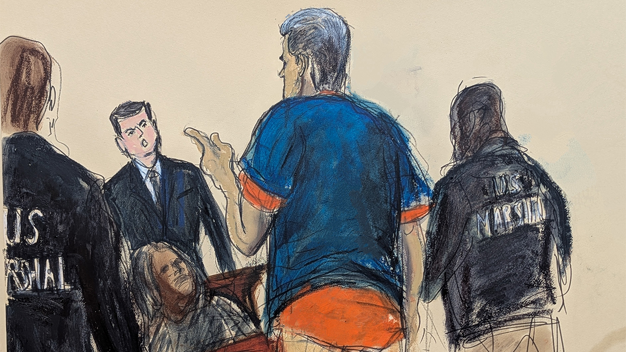 ▲ 5일 미국 뉴욕 맨해튼 소재 연방 법원에서 열린 니콜라스 마두로 베네수엘라 대통령(가운데)의 기소인부심문 스케치