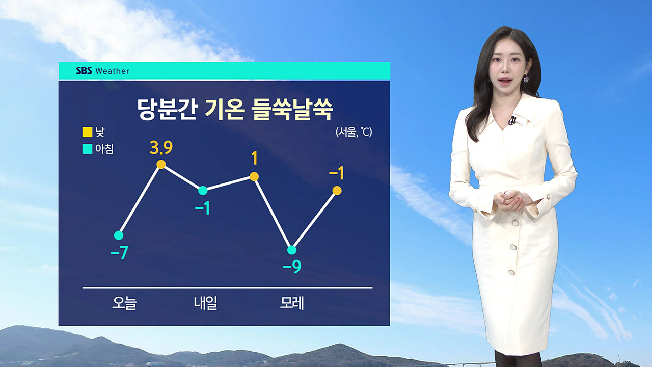 내일 아침 기온은 서울이 영하 1도로 오늘 아침보다 6도가량 높겠지만, 낮 기온은 서울이 1도에 그치는 등 점차 기온이 낮아지겠습니다.