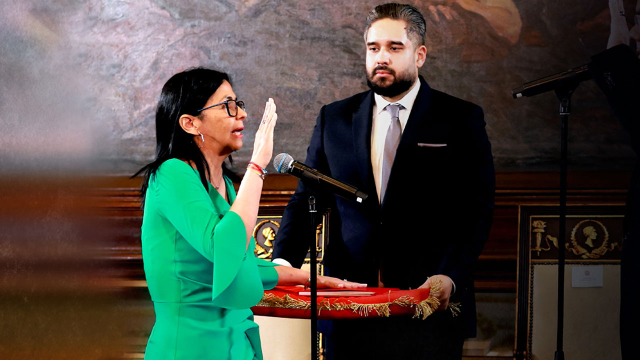 국회 의장으로 재선출된 친오빠 호르헤 로드리게스 앞에서 선서한 로드리게스 부통령은, 마두로를 여전히 대통령으로, 마두로 부부는 영웅으로 칭하면서 지금 상황이 고통스럽다고 말했습니다.