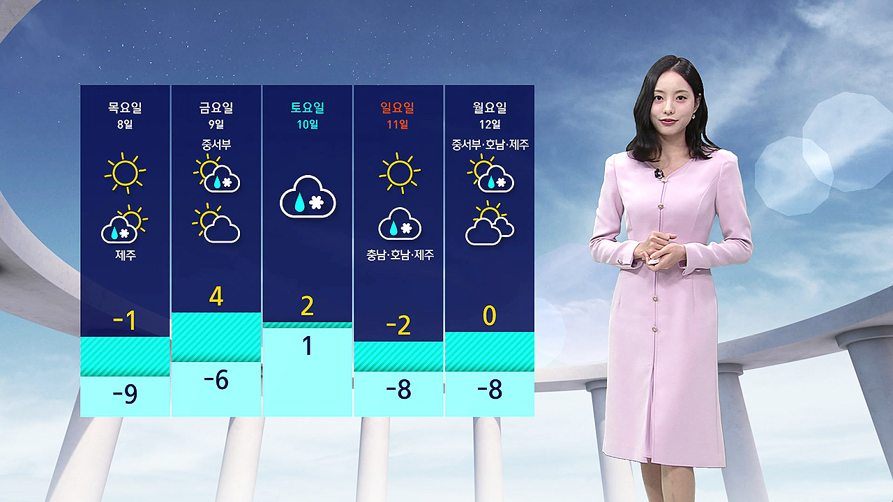 내일은 서울의 아침 기온이 영하 9도까지 떨어지면서 종일 영하권에 머물겠습니다.
