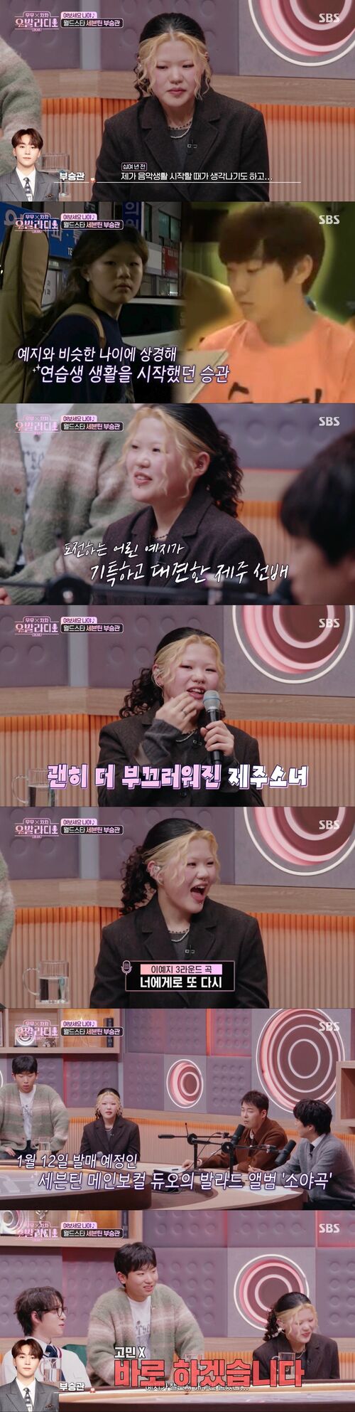 제주도 출신 이예지를 응원했다는 부승관은 "제주도에서 올라와서 음악 한다는 거 자체가 쉽지 않은데 제 옛날이 생각나기도 하고 저는 아무것도 한 게 없는데도 기특하더라"라며 같은 고향 출신으로 이예지를 응원한 사연을 솔직하게 말했다.