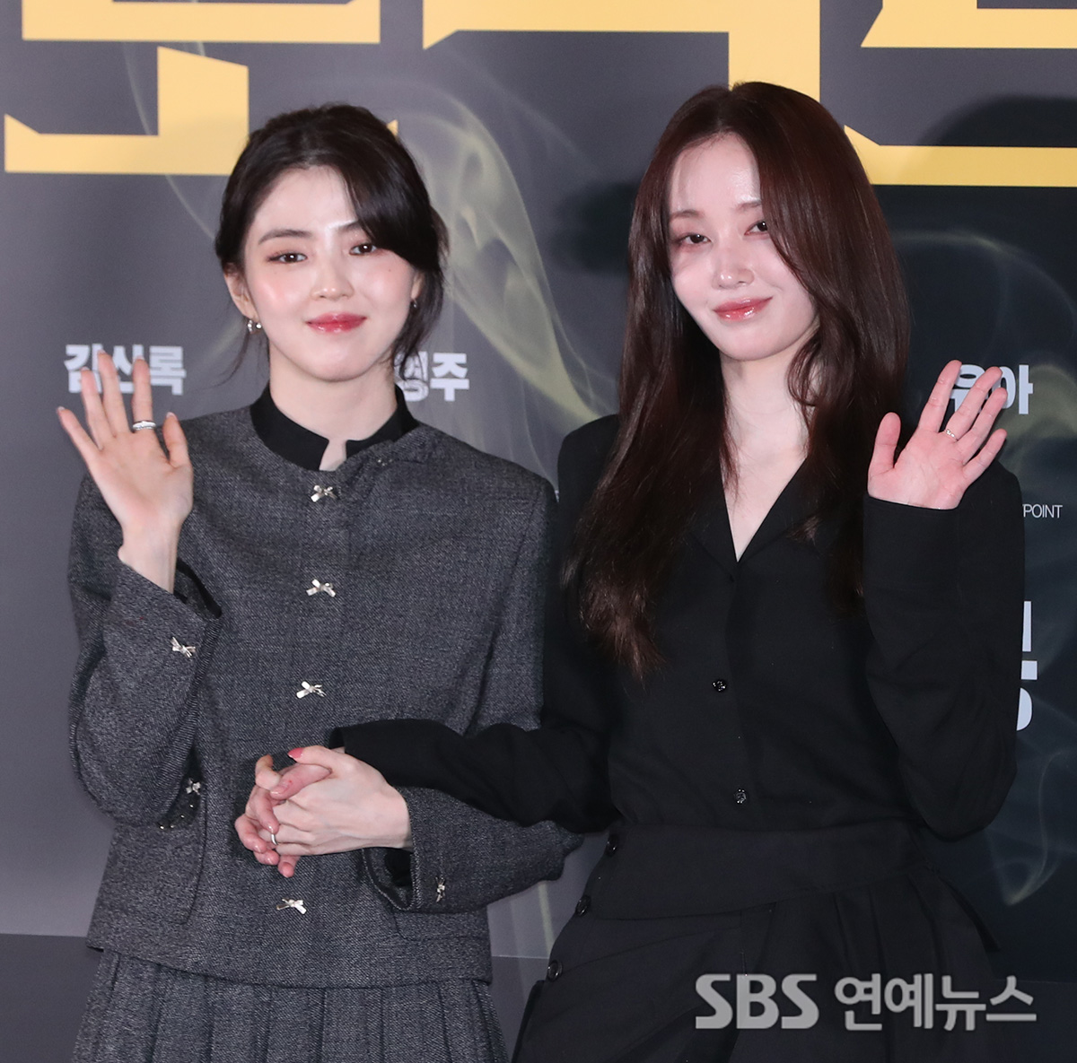 Han So-hee and Jeon Jong-seo lit up photo time at the ‘Project Y’ press screening and media Q&A, held Jan. 8 at Lotte Cinema World Tower in Seoul―striking in-sync poses while holding hands.