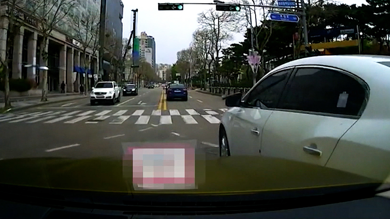 비보호 좌회전이 가능한 사거리에 한 승용차가 들어서자, 직진 차량이 갑자기 속도를 올리더니 그대로 들이받습니다.
