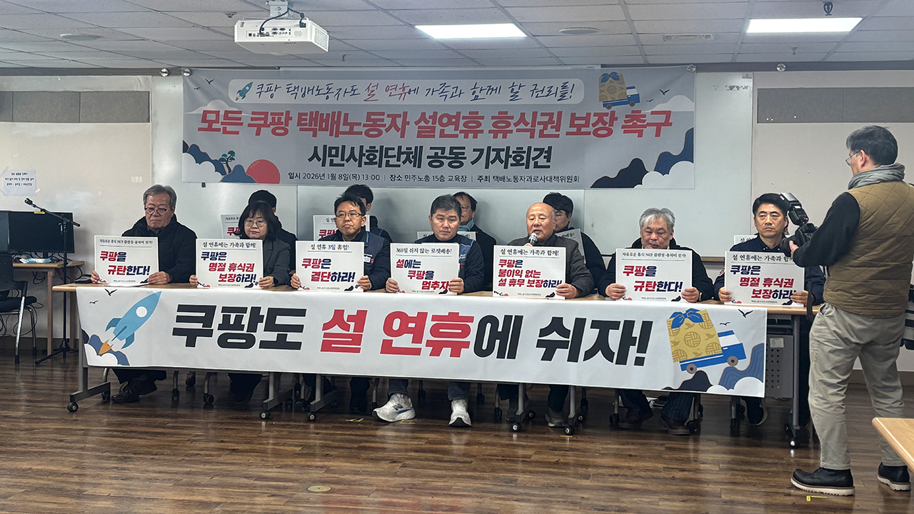 택배 노동자들이 쿠팡에 '설 연휴 휴식권' 보장을 촉구했습니다.