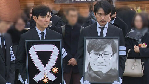 배우 정우성 씨는 영정을, 이정재 씨는 금관문화훈장을 들었고, 한국 영화계를 이끄는 후배 배우들이 운구를 맡아 고인이 된 선배의 마지막 길을 지켰습니다.